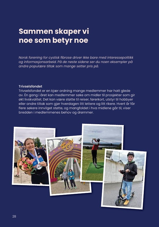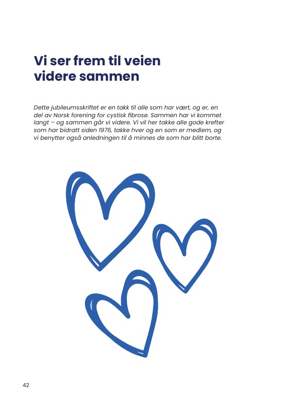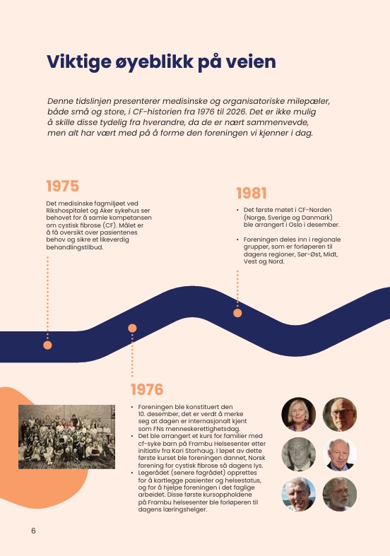 I 1976 gikk noen foreldre sammen om en felles erkjennelse: Ingen skulle stå alene med cystisk fibrose, og man trengte pasientstemmene i behandling og kamp for rettigheter. Femti år senere er Norsk forening for cystisk fibrose et fellesskap med rundt 1100 medlemmer. Foreningen bygger på erfaring, kunnskap og et sterkt ønske om bedre liv for dem som lever med de to diagnosene, CF og PCD, og deres pårørende.