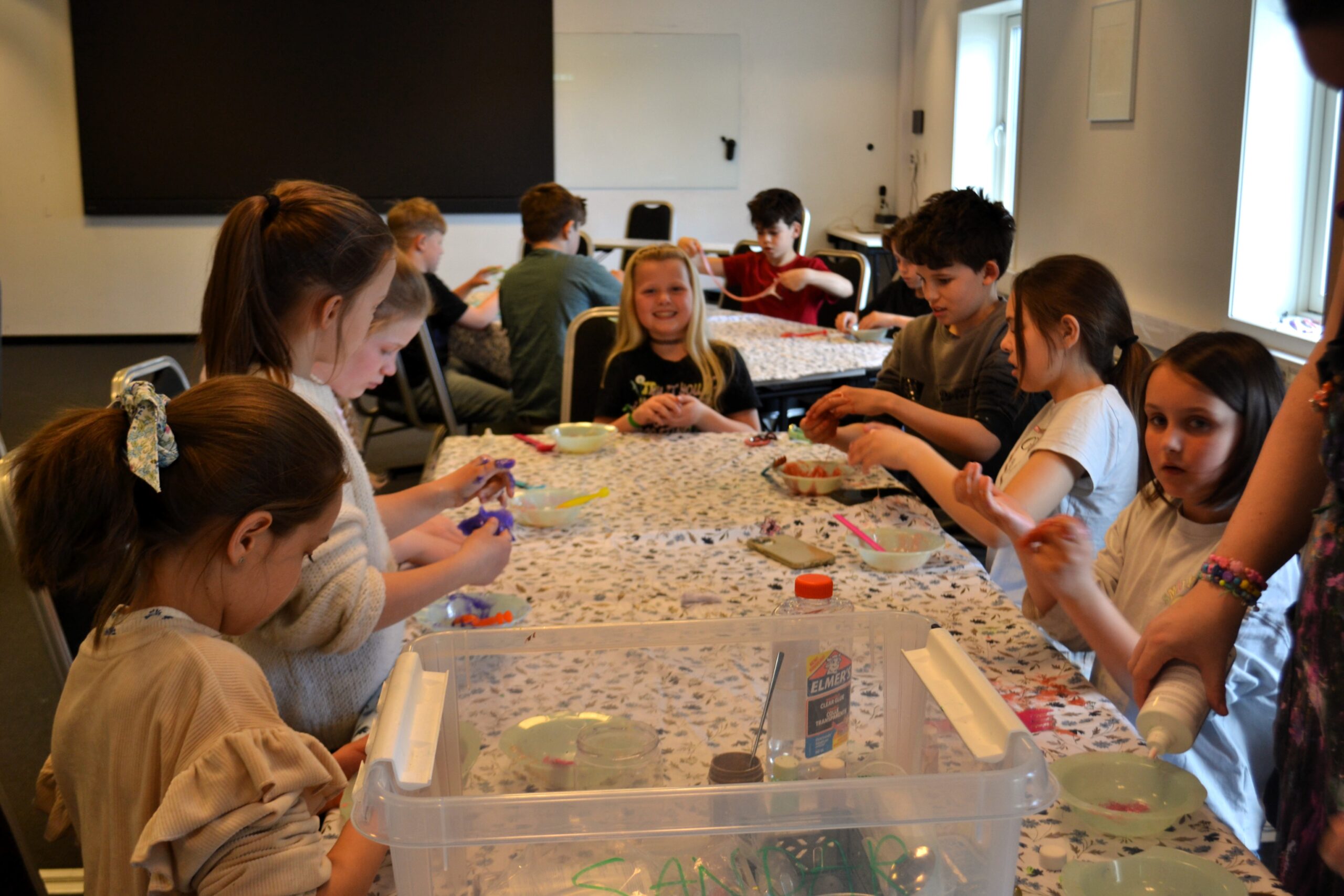Gjennom hele helgen hadde vi en kreativ workshop for de minste. De fikk bryne seg på både slim-verksted, maling på tskjorter, perling og film. Barna storkoste seg!