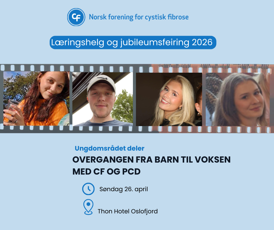I år har vi fått svært mange påmeldte, og vi er derfor blitt nødt til å stenge påmeldingen allerede. Dersom du ønsker å sette deg på venteliste, kan du gjøre dette ved å kontakte administrasjonen v/ Ylva på  ylva@cystiskfibroseforeningen.no